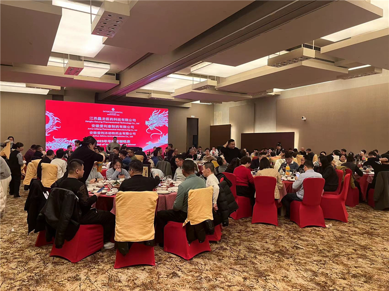 Jiangsu Dalong Pharmaceutical Technology Co., Ltd. held its 2023 annual meeting in Nanjing on January 27, 2024. Sales representatives from all of the country made year-end summaries. Representatives of Anhui Ailikang Pharmaceutical Manufacturing Co., Ltd., Anhui Ailixin Pharmaceutical Logistics Co., Ltd. and Anhui Ailimu Animal Medicine Co., Ltd. gathered together at the year end appreciation dinner. CEO Zhaojun Hu made a message for everyone. In 2024, we will unite as one, stand together for bigger achievements!